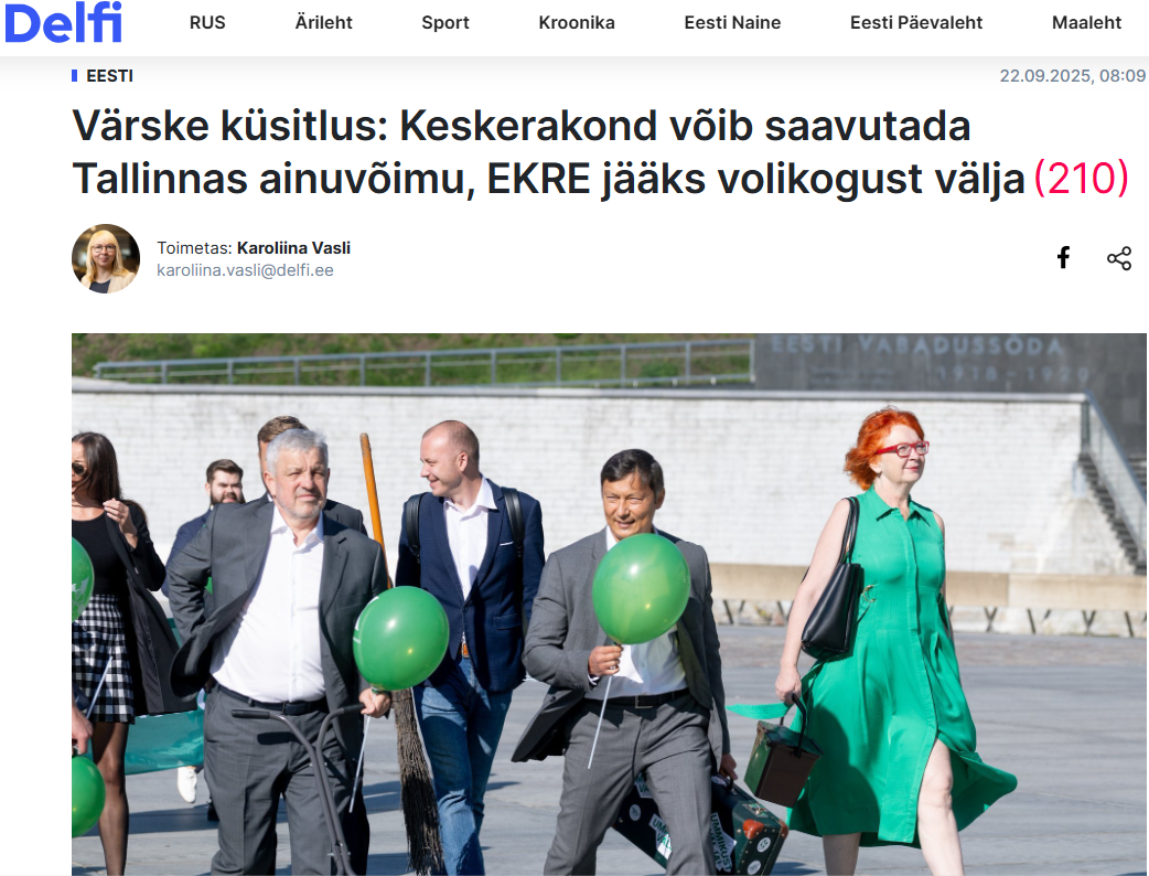 1) https://www.delfi.ee/artikkel/120405196/varske-kusitlus-keskerakond-voib-saavutada-tallinnas-ainuvoimu-ekre-jaaks-volikogust-valja